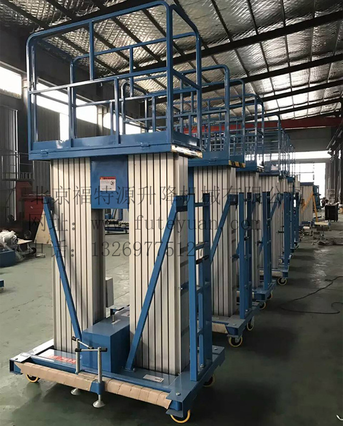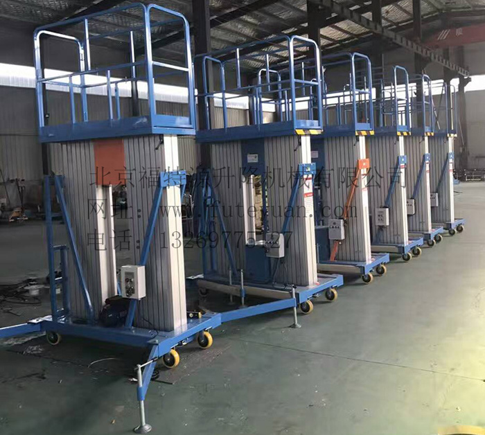 通常有單柱、雙柱、三柱、四柱、六柱等形式,根據需要可以加裝輔助行走裝置,為了放過通過低矮的通道可以定做為可斜式,還可以安裝到汽車、電瓶車等方便高空作業使用。