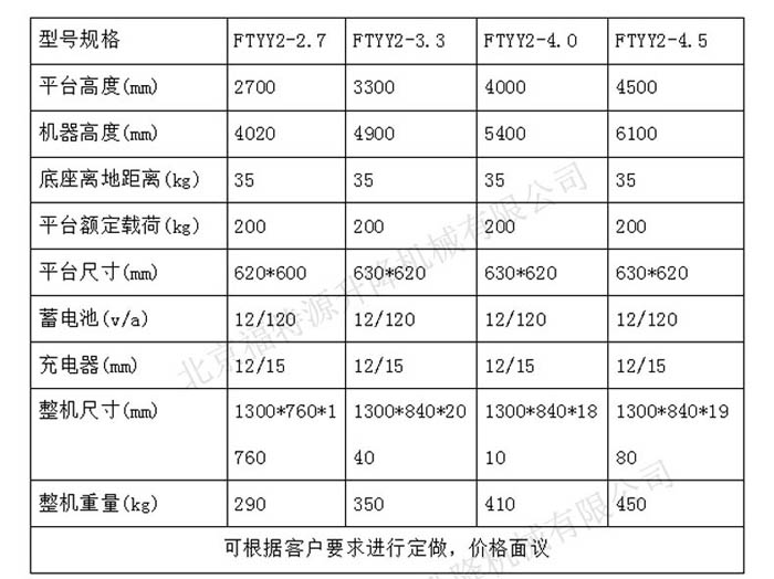 ▍全電動(dòng)高空工具車常規(guī)參數(shù) / Product Parameter
