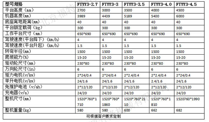 ▍全電動(dòng)高空工具車常規(guī)參數(shù) / Product Parameter