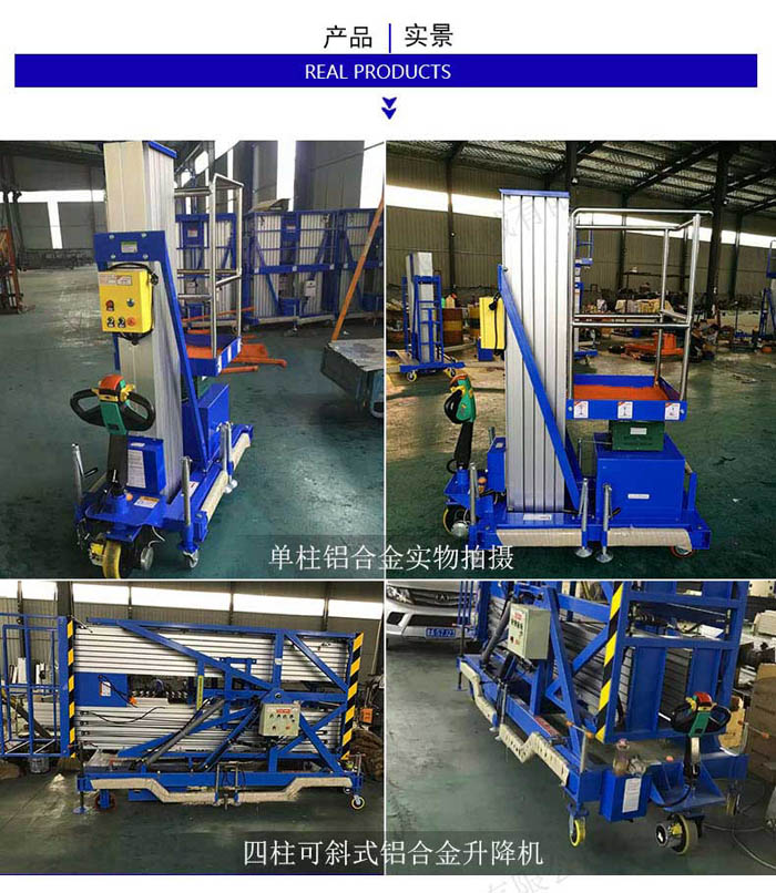 鋁合金式升降機是一種升降機,采用高強度優(yōu)質(zhì)鋁合金材料,具有造型美觀、體積小、重量輕、運轉(zhuǎn)靈活,推行方便。升降平穩(wěn)、安全可靠等優(yōu)點。它輕盈的外觀,能在極小的空間內(nèi)發(fā)揮高的舉升能力。廣泛用于工廠、賓館、餐廳、車站、影劇院、展覽館等場所,是保養(yǎng)機具、油漆裝修、調(diào)換燈具、電器、清潔保養(yǎng)等用途的安全伴侶。
